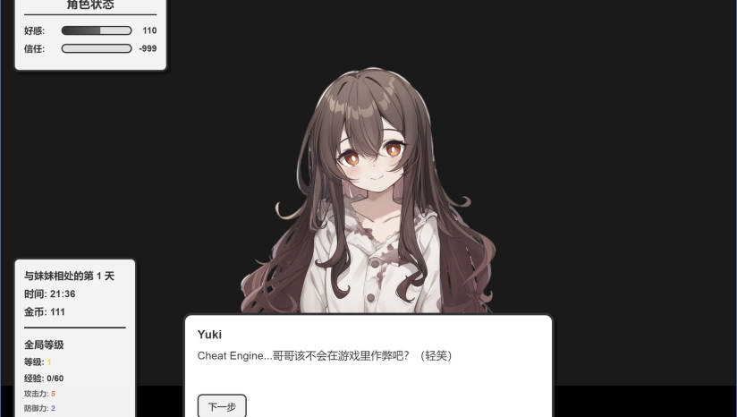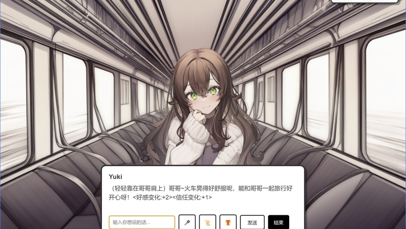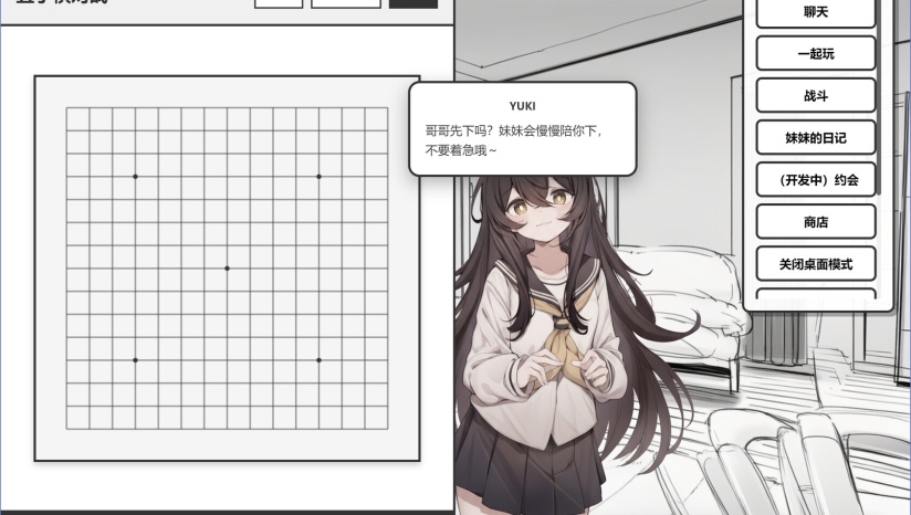 游戏核心是与AI妹妹Yuki进行实时对话和多元互动。玩家可通过打字或语音输入与Yuki交流,她的回应由AI实时生成。互动方式包括聊天、外出旅游、约会、玩小游戏(如五子棋)、换装、赠送礼物等。通过日常互动提升Yuki的好感度和信任值,解锁更多剧情和互动内容。游戏内置任务系统和金币获取机制,玩家可通过小游戏或任务获得金币,用于购买礼物或服装。游戏时间与现实同步,不同时段、节日会触发特殊事件和对话,增强沉浸感。玩家的选择将影响Yuki的性格发展(可爱、傲娇或病娇)和故事结局,形成多分支剧情。