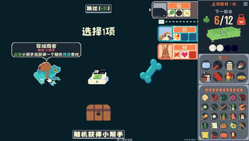 游戏核心是“大饼卷一切”的策略性玩法。你需要将各种食材合理放置在煎饼上,利用它们的属性和BUFF获得高分。例如,辣椒能点燃相邻食物,奶酪可叠加分数倍率,同类食材还能触发连锁反应。游戏提供两种模式:高速模式考验你在旋转缩小的煎饼与偷食材的捣蛋学生间的极限操作;回合制模式则允许你悠闲思考创意搭配。随着流程推进,你可以通过商店解锁新厨具与技能,利用超过50种特殊“遗物”道具激发隐藏效果。