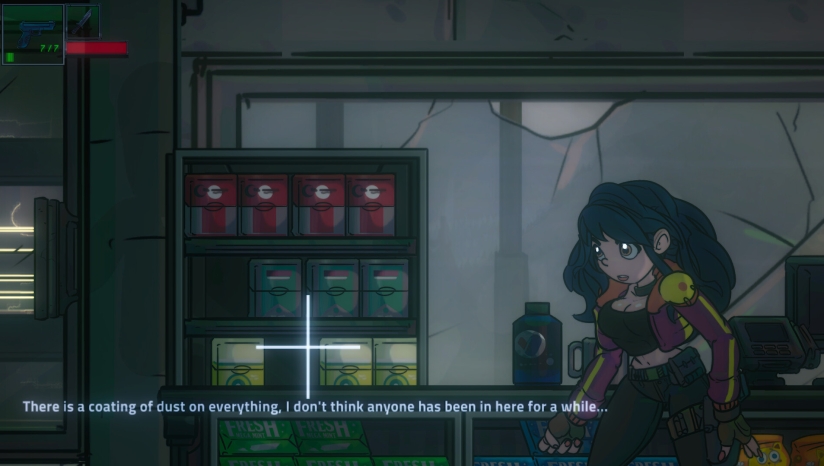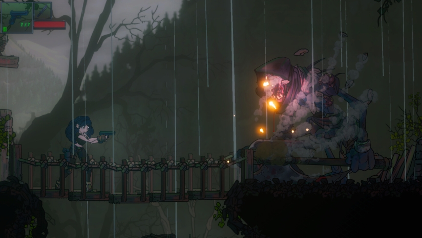 生存恐怖 × 横版探索的创新融合:游戏摒弃了类银河战士恶魔城常见的“无限弹药+高容错”设计,转而采用弹药稀缺、敌人威胁感强的生存恐怖逻辑。每一次开枪都需权衡,近战压制成为常态,玩家必须在“突突突”与“潜行躲藏”之间反复抉择。
