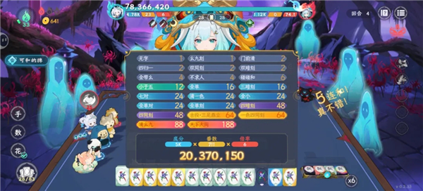 一般情况下,会直接显示在上面的是通过额外手段获取的属性,在胡牌的时候,先计算你的牌面底分,胡牌番数,加上这两个临时的数字之后再相乘来得到你的分数。