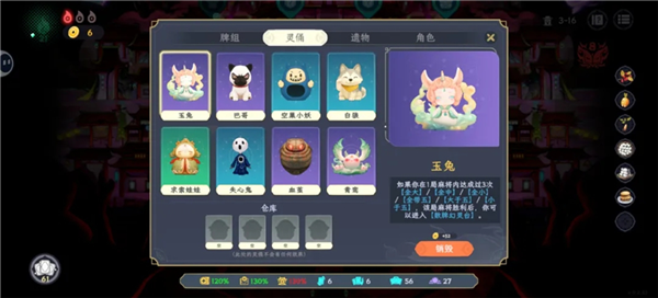 祭品则与前两者都不一样,祭品基本上是一次性的各种食物,代表着局内的即时决策,和灵俑一样拥有持有上限。