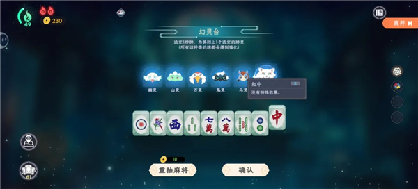 被牌灵影响的牌在摸到的时候就会影响自己和其他三张牌,通过牌灵修改牌库,你可以让牌库变成自己想要的样子,例如全是万字,全是东南西北风,或者全是条。