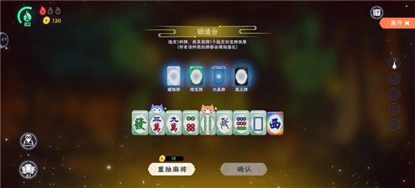 麻将整体采用的是国标麻将的规则,但在每个回合中,你可以一次摸取并调整多张牌(如图所示为四张)。在宣布听牌之前不能胡牌,而一旦宣布听牌,牌型就无法再进行任何调整。