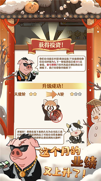 1、Q版的可爱小动物每天都在向你汇报公司的发展变化,沉浸式趣味游戏。