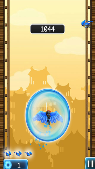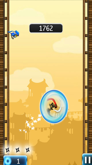 玩家在向上爬的过程中,如果可以看到蓝色的气泡,要尽量选择吃上它,因为这种道具可以帮助玩家抵挡一次外界的攻击伤害,如果忍者带着这种气泡向上爬,受到第一次攻击伤害,气泡就会消失,再受到伤害就会死掉,所以玩家要珍惜这种道具。