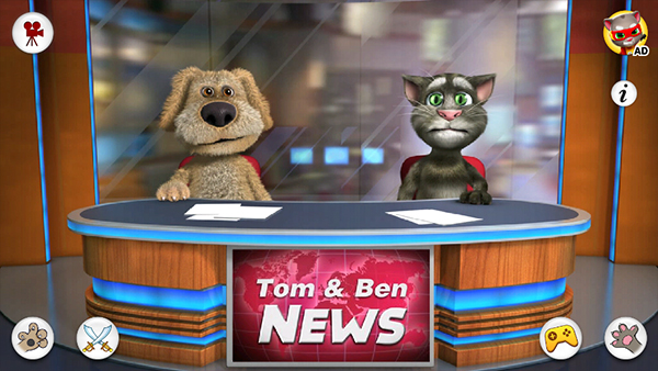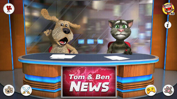 进入主界面,直接点击汤姆或本,它们便会端坐主播台,张嘴开麦,开始你的专属新闻播报。