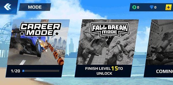 3、返回游戏界面点击PLAY,选择CHALLENGE MODE(挑战模式)、HILL CLIMB MODE(爬山模式)、DEMOLITION MODE(拆除方式)模式;