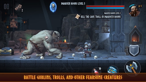3、美术风格迭代:在保留前作卡通渲染基调上,提升角色建模精度与场景光影效果。例如,矮人角色采用更细腻的毛发与装备纹理,熔岩场景通过动态粒子特效实现流动光影,增强视觉冲击力。