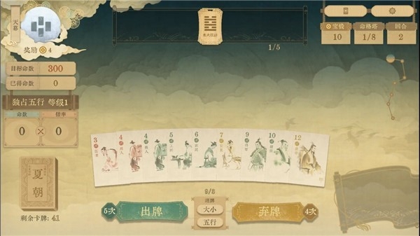 3、天幕作为对手,随机施加负面效果,玩家需用卡牌组合突破目标命数,实现逆天改命。