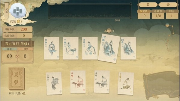 1、以《易经》六十四卦为灵感,改造小丑牌玩法,每局选 5张卡牌凑特定牌型得分。