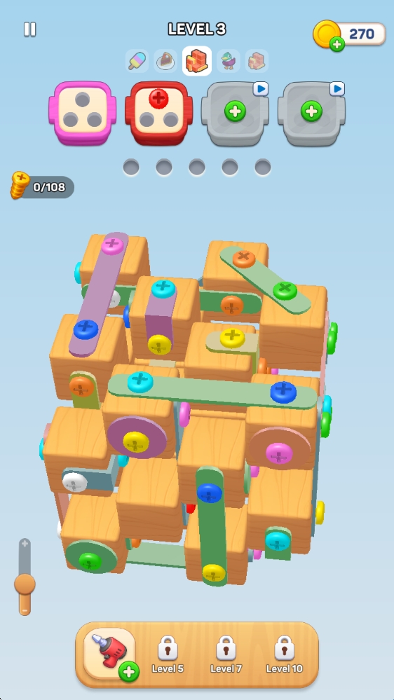 3、没有时间限制:按照自己的节奏玩!游戏并不着急,因此您可以花时间解决每个关卡,并享受成为螺丝大师的过程。