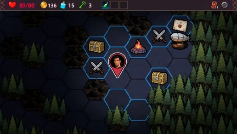 2、六边形地图探索:采用高容错率的六边形地图设计,玩家可以在迷雾笼罩的大陆上自由探索,发现各种随机事件和挑战。