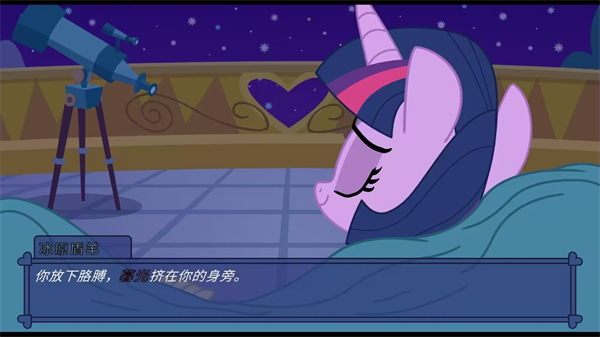 23、和紫色小马互动选择天文学研究然后打工到晚上去三楼阳台和她观星。