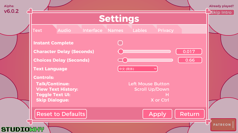 4、点击往下拉选择中文(简体),然后点击右下方的return”,语言即重置为了中文。