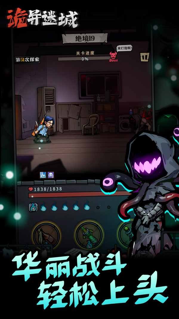 诡异迷城免广告破解版虽然主要是以放置挂机的的玩法为主,但玩家可以在作战时释放佩戴装备的技能来辅助战斗,例如持续点燃的燃烧瓶,治疗回血的医疗包等等,用它们实现战局的逆转,让战斗更具有不确定性。