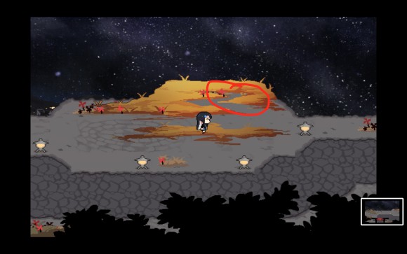 其次是这两个位置,也就是山道两侧的位置会在序章的第二第三阶段分别刷新两个很重要的npc,为了防止提前剧透就不说明身份了(我也不知道怎么形容另:无视下边截图的痕迹)