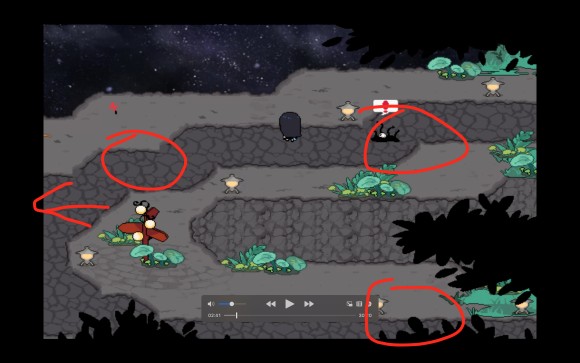 前期小怪还是不难的,虽说给的经验和金币并不可观,但在前期来说刷完一个场景的怪的经验足够我们升到二级了(顺带解锁第一个特技二次攻击),由于小怪处于默认隐形只有接近才会出现的缘故,以下也给出了比较完全的场景怪位置(一共四只),顺带一提,这种地缚少年都是两个两个出的,而且这种小怪也只会在前期看到了。
