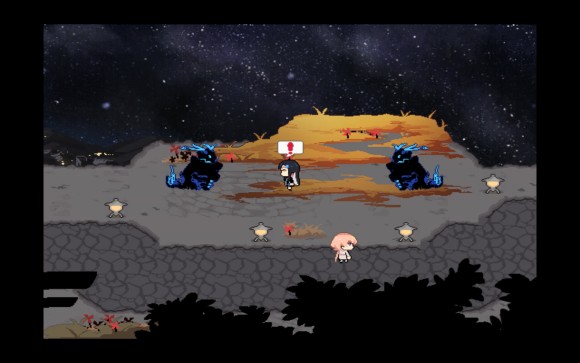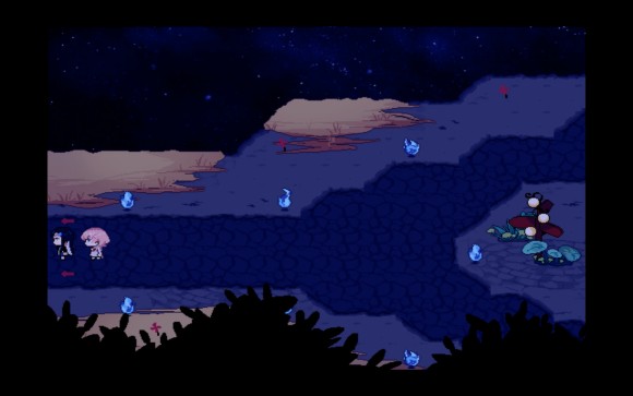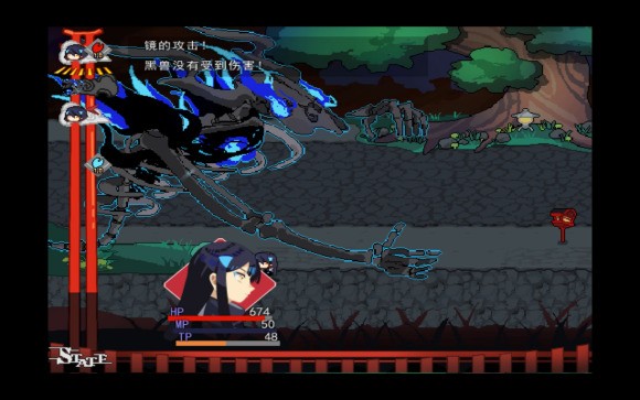 然后进入下一个场景之前再提及一下上个场景的互动内容,一个指路标和两条路(一条去山上一条去森林),不过序章之前我们的主角还是救友心切不会乱跑的。第二个场景则只包含两个地缚鬼以及一个后面来才会刷新的融合怪。