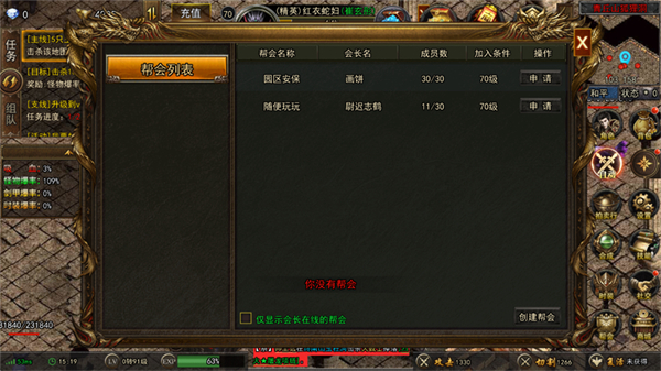 3、进入游戏第一步,我们先加入到帮会中去。