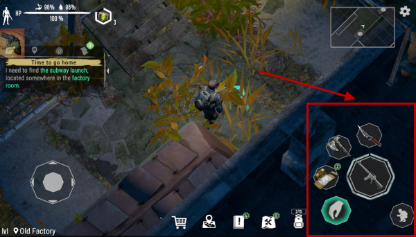 2、右侧的这些按键包含了各种互动按键,比如拾取、蹲下,还有各种武器的攻击按键。