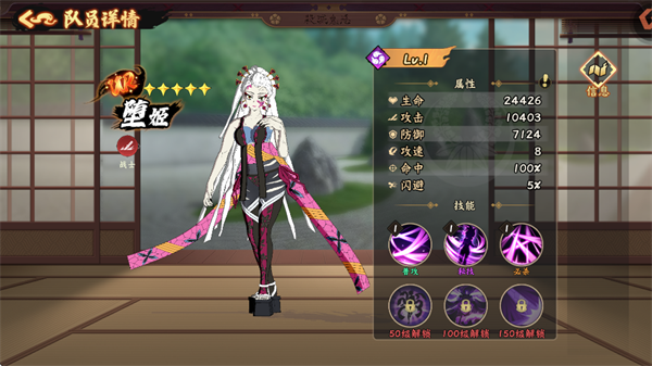 必杀技:【拾之牙 圆转旋牙】获得自身攻击力140%的护盾。对自身周围圆形范围造成攻击力300%伤害,然后对每个敌人有60%概率[嘲讽]。