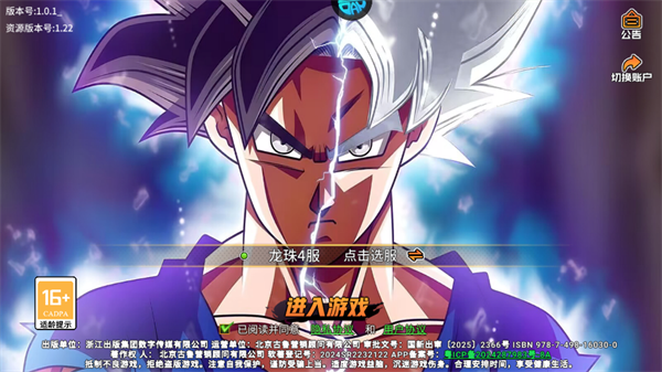 1、打开游戏,我们能够看到白神形态孙悟空的登录界面,我们可以选择区服以及同意协议之后就能够开始游戏了。