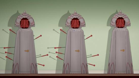 与此同时,本作在美术风格上深受比利时超现实主义大师雷内·马格利特(Rene Magritte,1898-1967)的影响,其诸多场景在怪诞之余,以日常物体的荒诞组合挑战观众对现实认知,将哲学与心理学中的重重隐喻藏匿其中,值得反复欣赏,认真玩味。