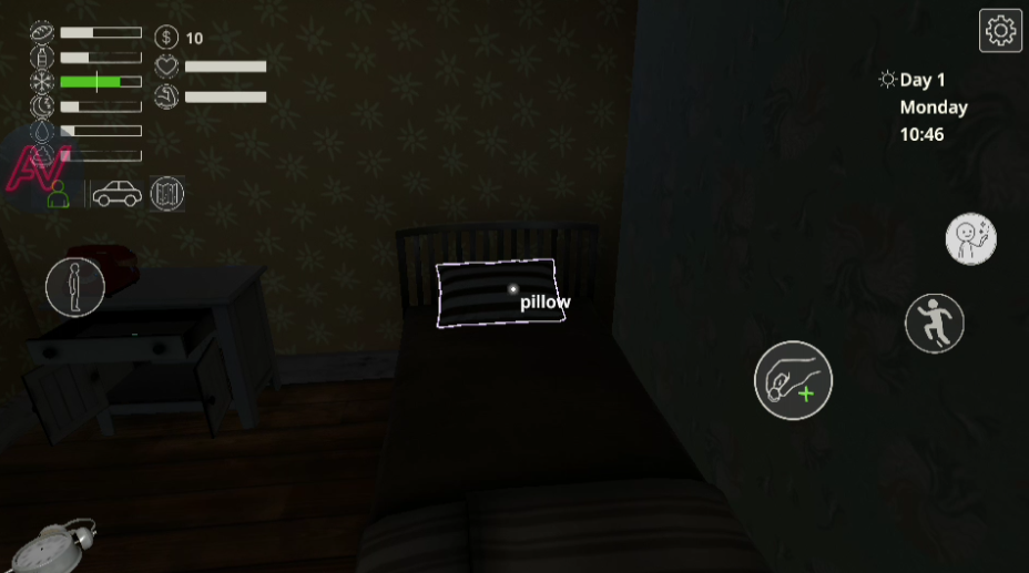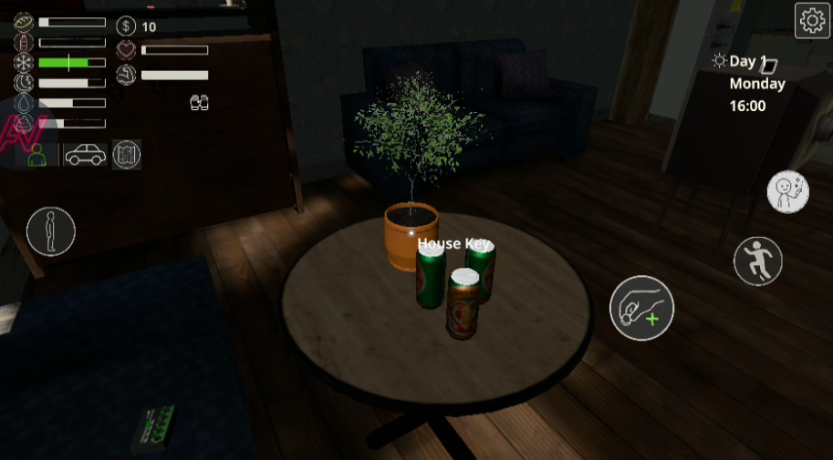 1、进入到游戏中,处于一个房间内,你被锁在里面,里面的所有可交互的物品可触碰,你需要找到出门的钥匙。