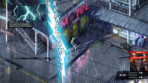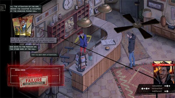 6、你能够以独属于自己的方式推进剧情,同时通过在图表中储存记忆来解锁意图和思维模式。你可以采用奇怪的思维模式进行出乎意料的有趣对话,并体验各种能够改变人格的状态效果,例如在喝醉时变得更外向,或在焦虑时变得格外敏感。