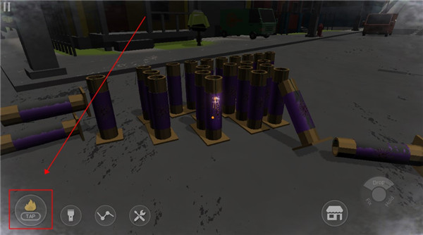 10、摆放好后,我们点击滑动屏幕对准烟花,然后点击旁边的打火机就可以引燃引线,点击一次即可,其余烟花会一起被点燃。
