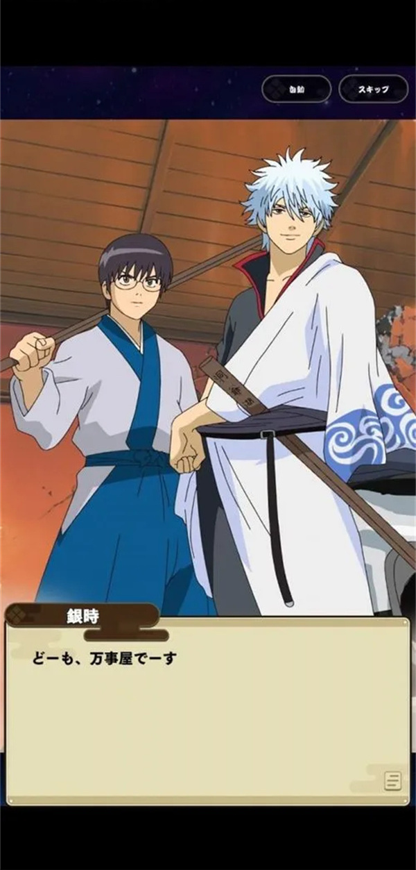 银魂手机战斗编年史日服手机版(也叫银魂Gintama)是由世嘉制作发行的一款有着人气动漫《银魂》IP正版授权的日系二次元竖版RPG游戏,玩家将在游戏中化身为歌舞伎町的一员因为外星人天人入侵后武士道没落而加入了阿银的万事屋,在这里和神乐、新八等熟悉的角色成为伙伴一起处理各种委托,展开非常有银魂特色的胡闹热血战斗。