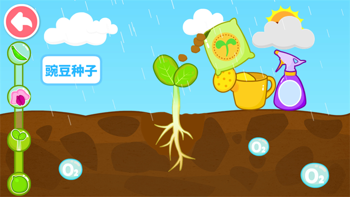 宝宝爱自然宝宝巴士是一款专为幼儿启蒙教育打造的手机游戏,游戏以植物和自然为主题,通过闯关、互动、动画的方式提高宝宝对自然的认知,宝宝可以在其中选择不同植物的种子进行互动种植,需要给他们进行浇水、施肥,观察植物从种子发芽到成熟结果的过程,还能通过游戏了解植物的传播方式,比如是风力传播、水力传播还是动物扩散,十分有趣。