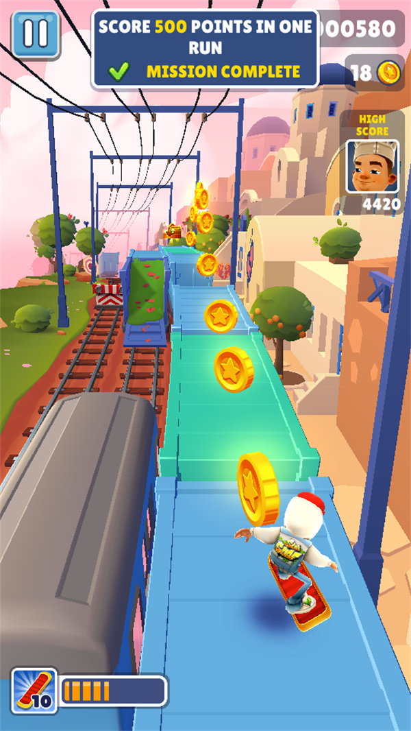 地铁跑酷希腊2026版本的游戏玩法并没有做出太大改变,玩家操控角色在到处都是障碍物的地铁站中进行跑酷,合理使用道具尽可能地获得更多分数。