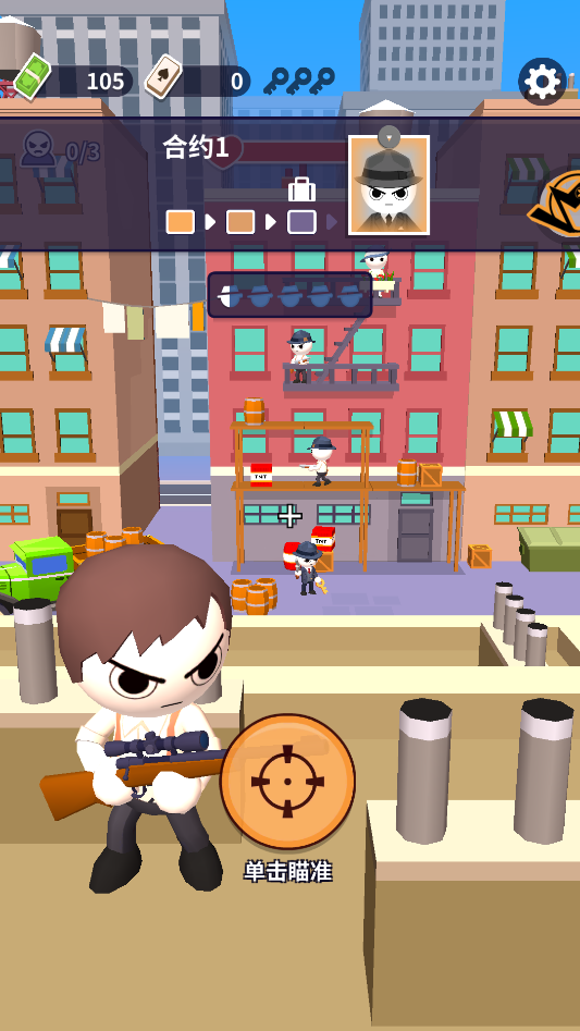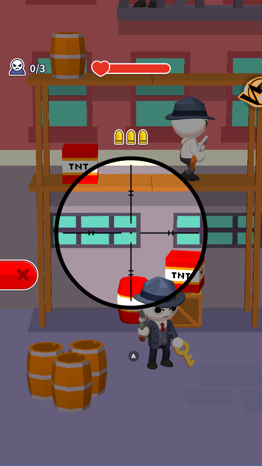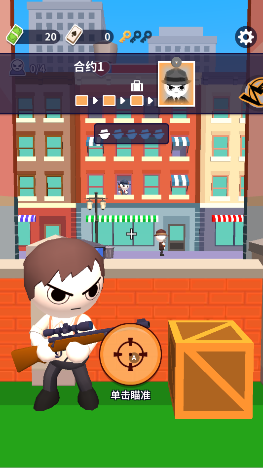 王牌神枪手游戏手机版是一款采用了卡通风格、策略射击玩法、休闲闯关元素的手机游戏,这款游戏的整体操作方式非常简单易懂,玩家只需在这里点击瞄准按钮,对着相应的敌人目标进行射击操作,只有做到枪枪爆头,这样才能够完成闯关操作。另外,该游戏还会在敌人群体中分布各种平民,玩家必须格外小心,千万不要误伤平民,否则直接导致游戏失败。