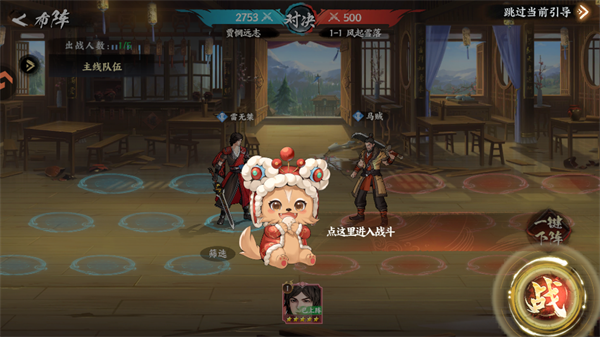 3、然后完成阵容组建操作,点击战按钮。