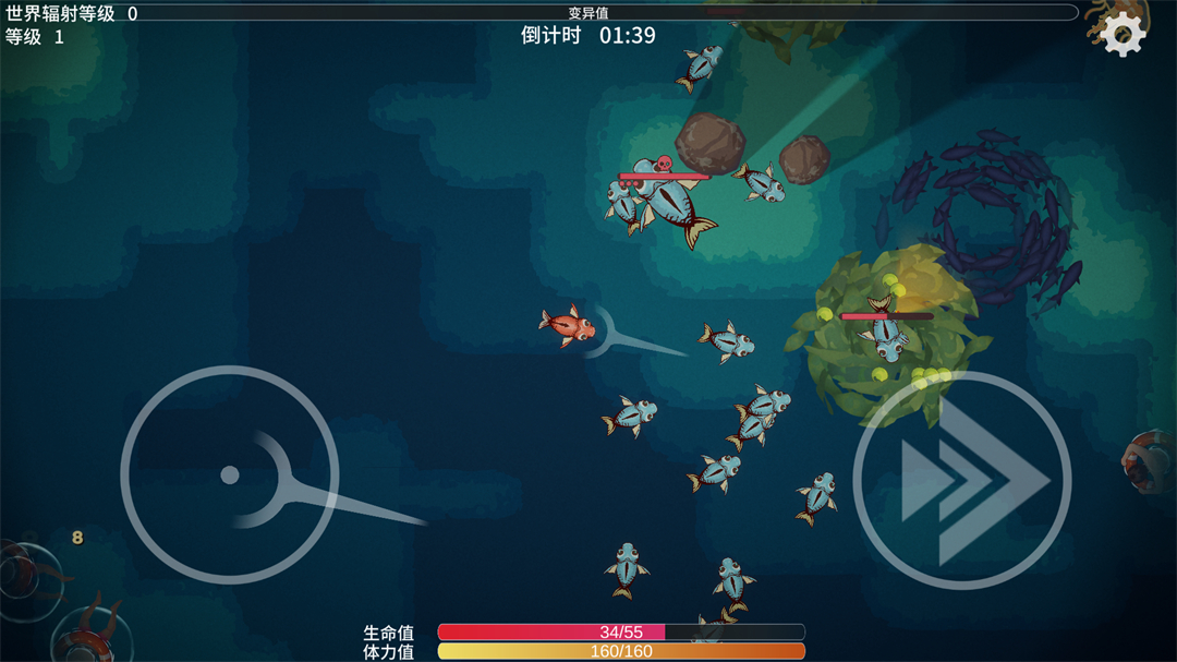 游戏设计了非常独特的变异系统,玩家可以对小鱼的各种器官进行自由搭配升级,比如深渊巨口、螳螂刀、触手等,不断地躲避强大的敌人偷偷发育,还是非常考验玩家的策略性的,游戏中的鱼类非常多种多样,玩家能见识到不一样的海洋世界。