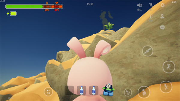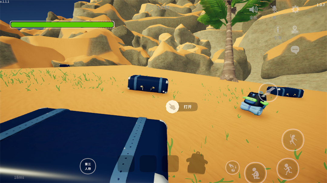 6、在屏幕左上角是你的体力条,你的体力会因为携带的物品重量、受伤、饥饿等因素降低,使用道具可以恢复体力。