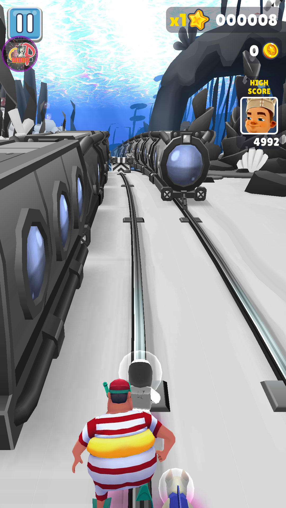 地铁跑酷Aurora公益1.0版本是一款非常好玩的休闲跑酷类手机游戏,游戏是玩家根据原版游戏进行改编自治的版本,玩家将进入亚特兰蒂斯种开启跑酷之路,这里沉落着轮船、四处游荡着海妖、鱼类,游戏的玩法还是跟原版一样的,玩家需要操控角色躲避障碍物并且收集金币,不能被后面追逐的怪物抓住,游戏中没有繁琐的任务和很长的剧情,玩家只需要尽情跑酷即可。