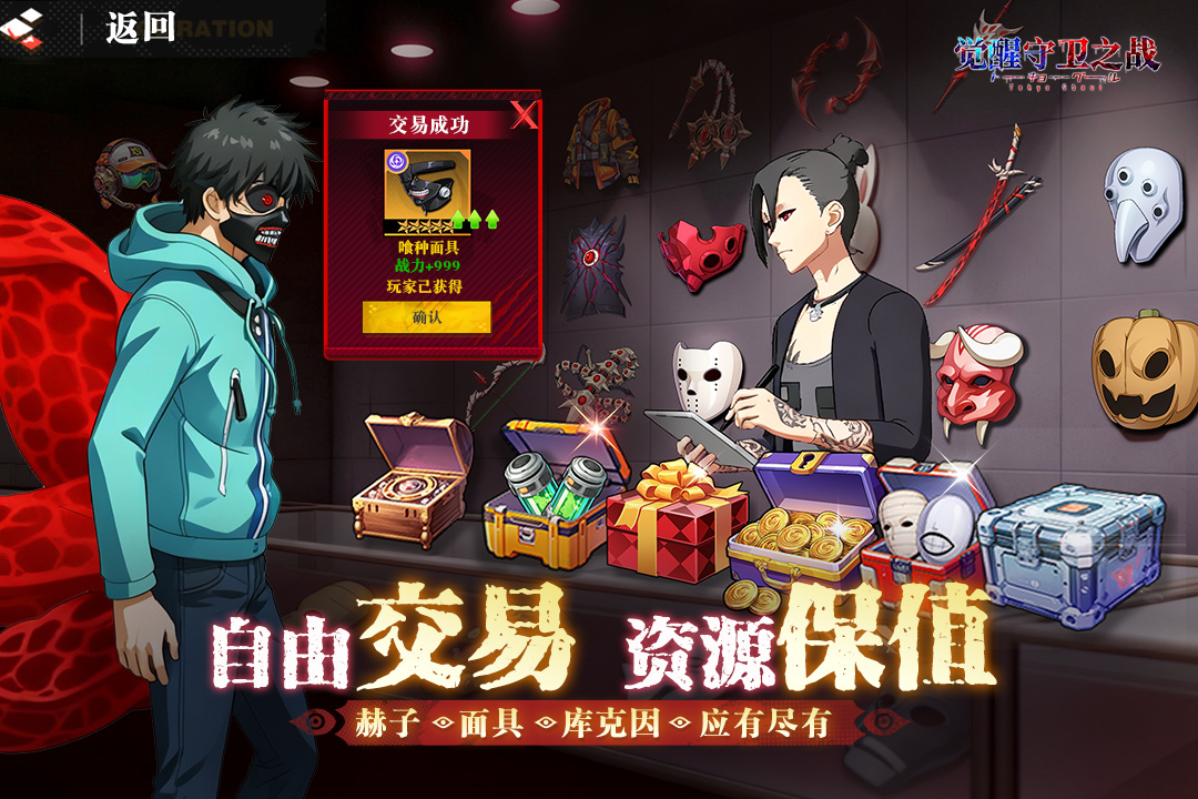 3、自由多维的成长体系:玩家可自由培养金木研、董香等数十位角色。除了基础的强化,更有独特的守护连协和好感度互动系统,让角色成长路径千变万化。