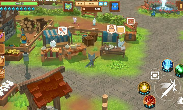 游戏以童话世界为背景,玩家扮演可爱动物角色展开冒险,在探索中与怪物战斗,通过打怪获取材料制作装备,形成“战斗-升级-挑战更强敌人”的闭环,战斗体验丰富且具策略性。