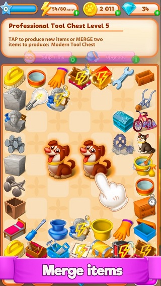 ● 非常容易理解和放松玩耍-只需合并两个项目,然后翻新房屋即可。