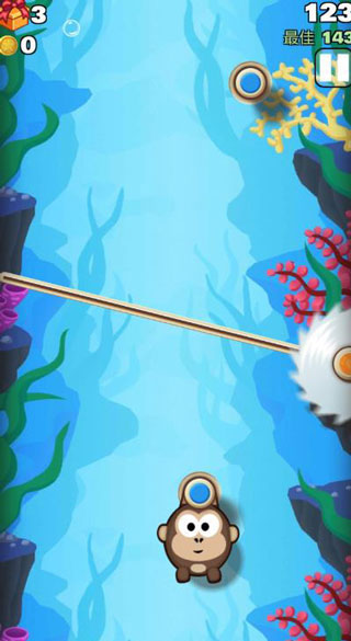 1、弹射、反弹、甩动猴子,向着胜利曙光迈进。