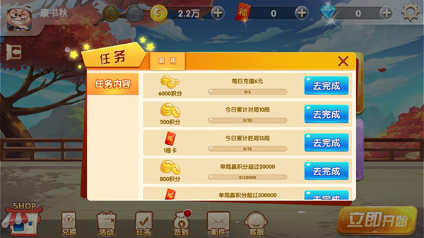 1、每天登陆送豪礼,连续登陆送更多,诚意满满,积分不足自动发放,让您免费打牌