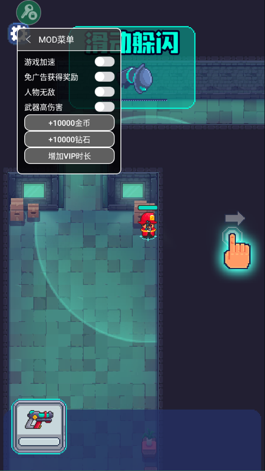 6、点击左上角的钥匙图标,可以使用MOD菜单,包括游戏加速,免广告获得奖励等等~