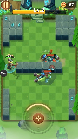 操作方面同样非常简单,玩家按住屏幕即可唤出虚拟摇杆,向指定方向滑动角色便会进行移动;遇到敌人后,只需松开手指,角色便会使用弓箭自动攻击离自己最近的敌人。形象而言便是Hit and Run。
