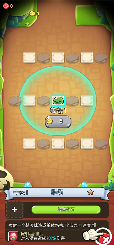 当你的怪物积攒到一定程度时,你拥有了攻击和攻速木桩,你也有了像样的攻击手,这个阶段你就发现这个游戏的主要打法是一只怪摆第一排,左右插上木桩就能清掉90%以上的怪。当你的输出手和木桩达到40-60级时,你一般就能顺利通过第一关了。