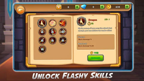 点击英雄头像便可进入游戏的英雄界面,这里包含着英雄的技能选择与配置,英雄的攻击提升,还有护甲和生命值的强化,关于技能配置,玩家只能选择三种技能出战。