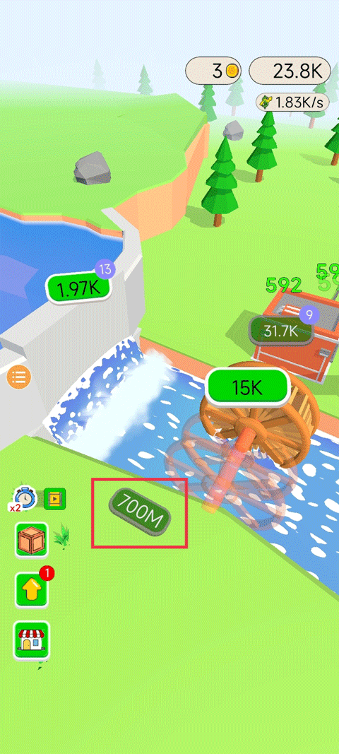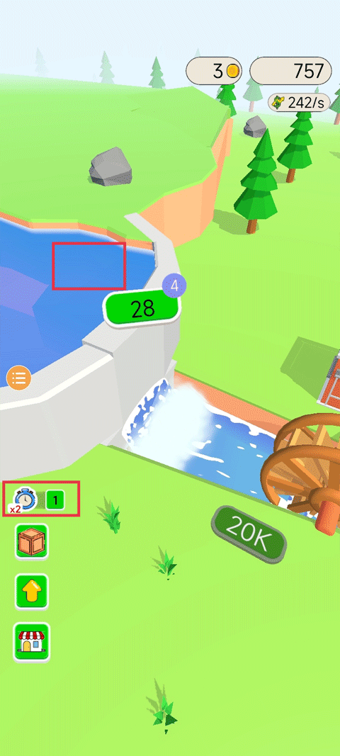 3、有时候也需要注意水库中时不时飘在水面上的盒子,里面会有辅助道具,加快水力发电机的时间。