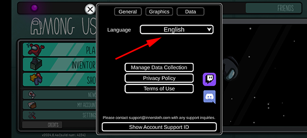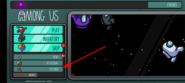 1、进入游戏首页,点击下图所示位置,打开设置页面