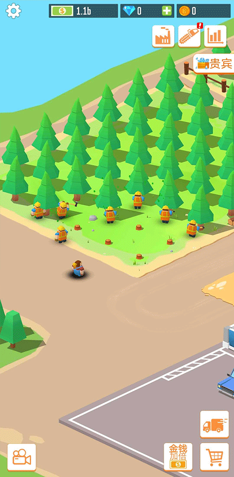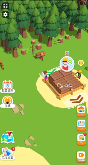 5、 玩家不断累计财富,完成任务并扩大木材厂地图进度。